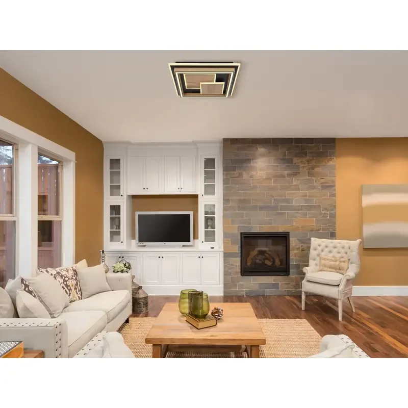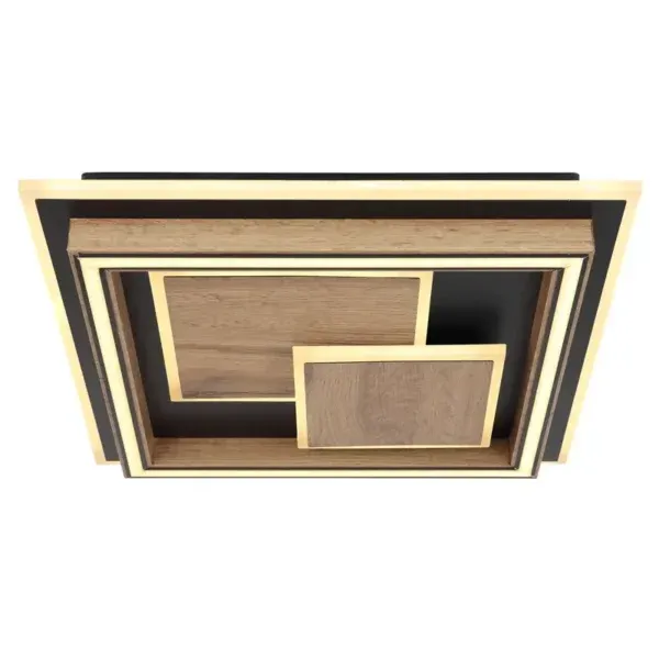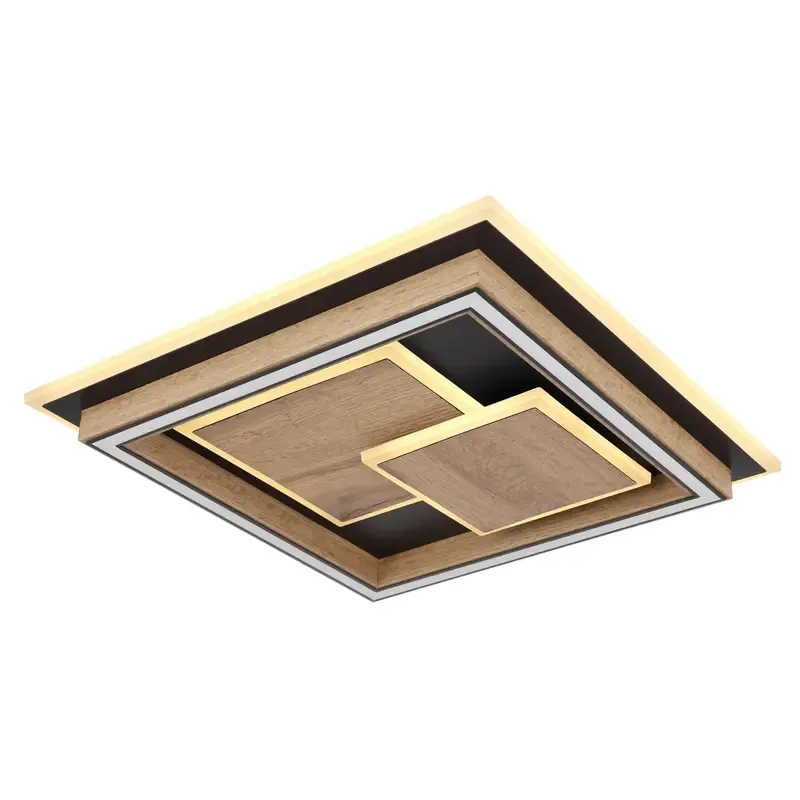 LED PLAFONSKA LAMPA Moderna kvadratna plafonska lampa u mat crnoj boji pravi je ukras za vaše životne prostore. Telo, izrađeno od crnog mat metala i MDF-a u tamnom drvenom izgledu, ukrašeno je sa više kvadrata u koje su ugrađeni LED izvori svetlosti, pružajući prijatno i atmosferično osvetljenje. Akrilno sjenilo u opalnom izgledu omogućava nezaslepljujuće osvetljenje i doprinosi ugodnoj atmosferi u prostoru. Sa dimenzijama 410 mm x 410 mm, snagom od 32W i svetlosnim tokom od 1600 lumena, ova plafonska lampa obezbeđuje dovoljno svetlosti za vaše prostorije. Pomoću zidnog prekidača možete birati između tri različita režima: 1. samo unutrašnji LED-ovi, 2. samo spoljašnji LED-ovi, 3. svi LED-ovi zajedno. Zahvaljujući funkciji memorije, plafonska lampa pamti poslednje izabrano podešavanje. Učinite da vaš dom zasija uz ovu svestranu i energetski efikasnu plafonsku lampu.