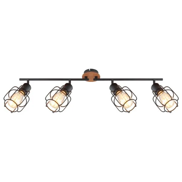 Ovaj plafonski reflektor iz serije WILLA ističe se svojim jednostavnim dizajnom napravljenim od crnog metala. Reflektor dužine 80 cm sastoji se od okrugle drvene ploče na koju su fiksirane dve metalne grane. Opremljen je sa po dva pokretna E27 grla uokvirena crnim metalom sa metalnim mrežastim abažurom, koja mogu biti opremljena odgovarajućim sijalicama po vašem izboru. Ovo vam omogućava da odredite boju svetla i jačinu. Kroz nekoliko artikala iste serije, možete divno kombinovati ovaj reflektor i napraviti elegantan ambijent u vašem enterijeru.